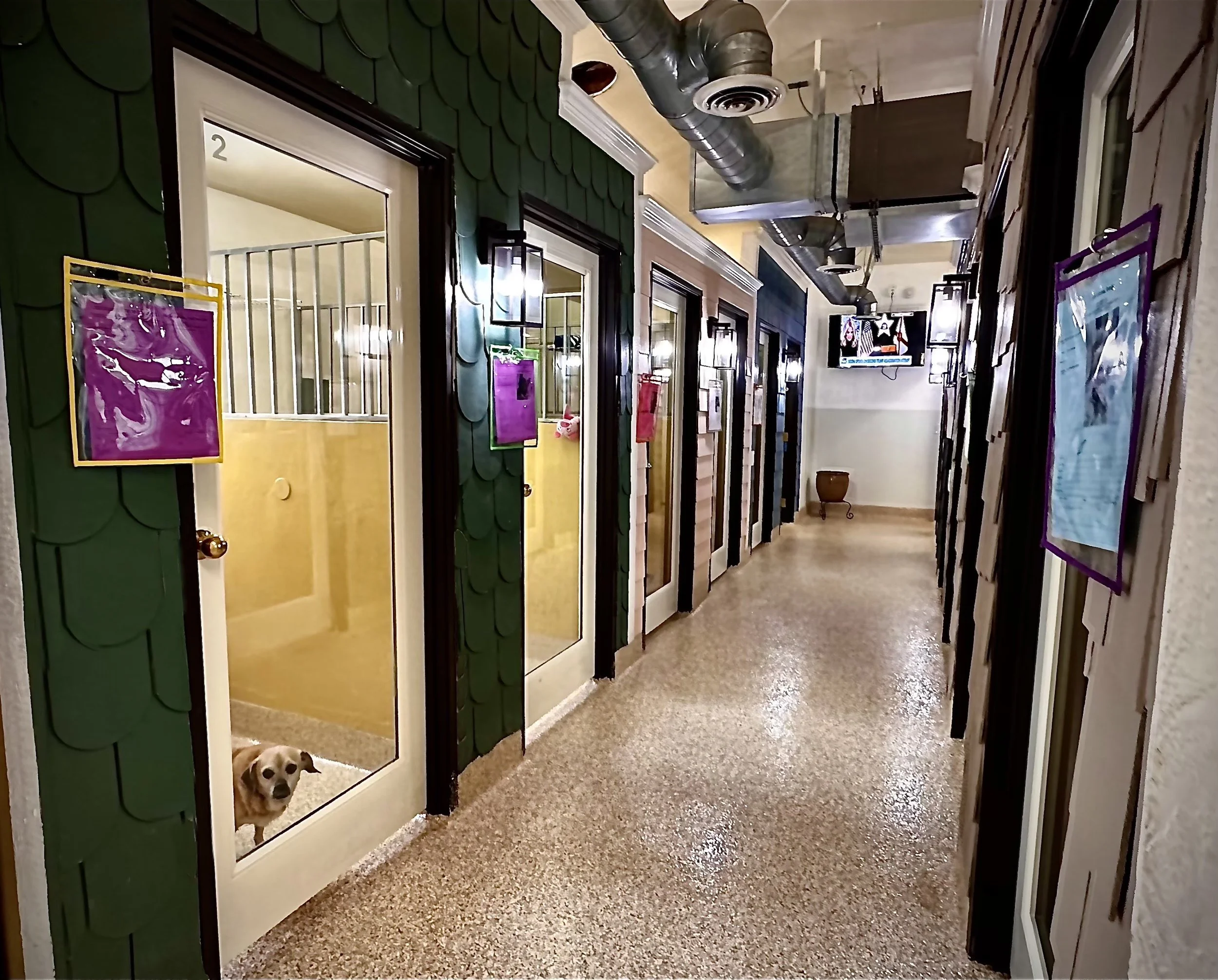 Dogs must be at least 4 months old, with three sets of vaccinations to stay with us. We cannot accept any pregnant pets or females in heat.